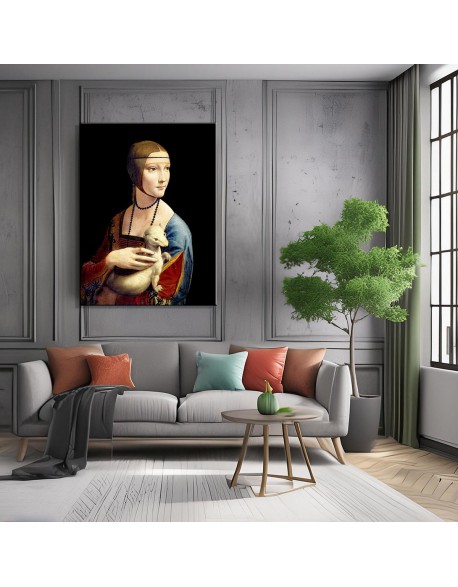 Obraz "Dama z gronostajem" autorstwa Leonarda da Vinci to jedno z najbardziej znanych portretów artysty. Reprodukcje tego obrazu, w tym również na płótnie, są szeroko dostępne, pozwalając cieszyć się pięknem i detalicznością oryginalnego dzieła.