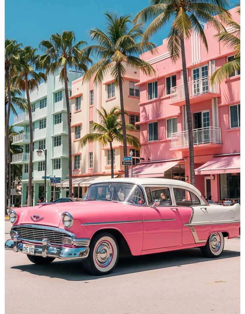 Biało-różowy Chevrolet na Kubie - obraz na płótnie