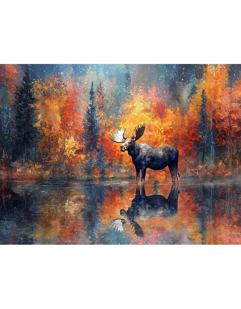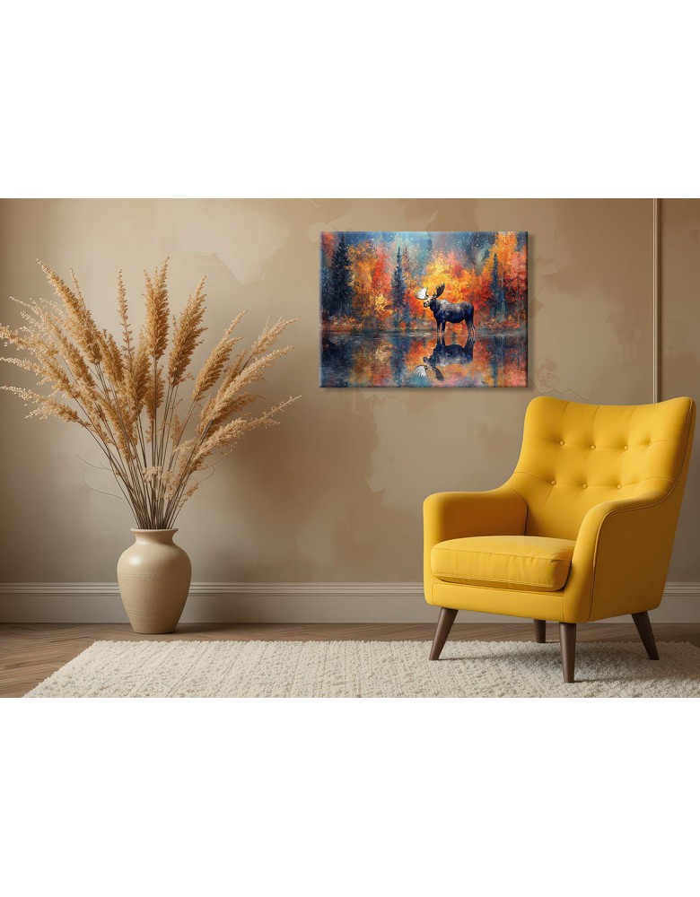 Łoś na tle kolorowych drzew - obraz na płótnie