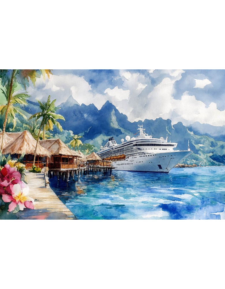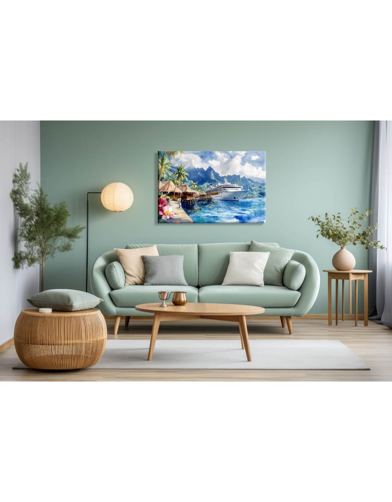 Statek wycieczkowy przy wyspie - obraz na płótnie