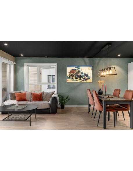 Dzięki precyzyjnemu wykonaniu, w obrazie można dostrzec drobne detale, które podkreślają estetykę japońską – prostotę formy, ale i głębię znaczeń. Reprodukcja obrazu wprowadza do wnętrz harmonię, spokój oraz głęboką refleksję nad światem, co czyni ją doskonałą ozdobą w stylu wabi-sabi i japandi.