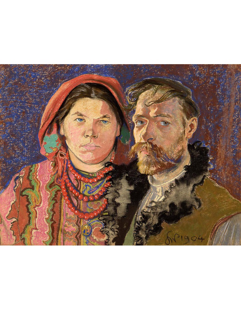 Wyjątkowy obraz autorstwa Stanisława Wyspiańskiego – „Autoportret z żoną” – to intymne i zarazem symboliczne dzieło jednego z najwybitniejszych polskich artystów epoki secesji. Przedstawia artystę obok jego żony Teodory, tworząc kompozycję pełną emocji, czułości i ludzkiego wymiaru. Portret, utrzymany w charakterystycznym stylu Wyspiańskiego, łączy realistyczne ujęcie postaci z subtelną dekoracyjnością i bogactwem detalu. To dzieło ukazuje nie tylko wrażliwość twórcy, ale i jego głęboko osobisty świat.