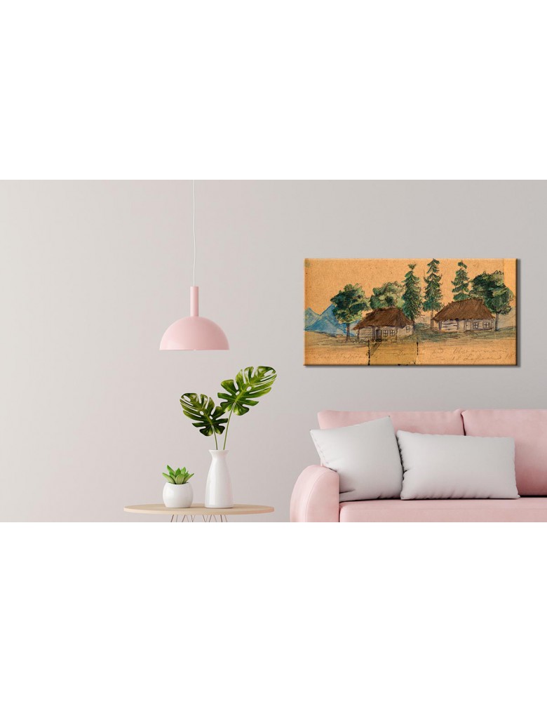 Reprodukcja obrazu Stanisław Wyspiański „Domki pod Olszanicami” drukowana na bawełnianym płótnie o dużej gramaturze. Obraz oprawiony na sosnowym blejtramie 20 mm, zadrukowane boki – gotowy do powieszenia.