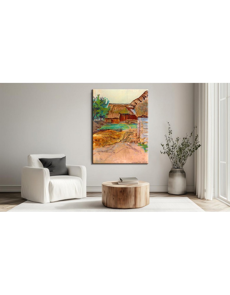 Reprodukcja obrazu Stanisław Wyspiański „Wieś Konary” drukowana na bawełnianym płótnie o dużej gramaturze. Obraz oprawiony w sosnowy blejtram 20 mm, zadrukowane boki – gotowy do powieszenia.