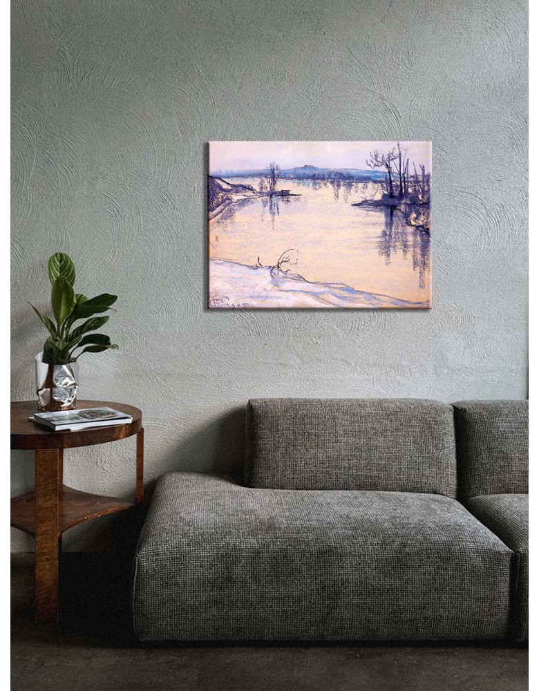 Reprodukcja obrazu Stanisław Wyspiański „Wisła pod Krakowem” drukowana na bawełnianym płótnie o dużej gramaturze. Obraz oprawiony w sosnowy blejtram 20 mm, zadrukowane boki – gotowy do powieszenia.