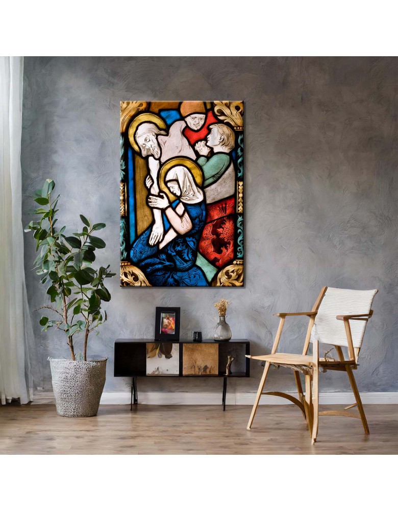 Reprodukcja obrazu Stanisław Wyspiański „Witraż: Zdjęcie z Krzyża” drukowana na bawełnianym płótnie o dużej gramaturze. Obraz oprawiony w sosnowy blejtram 20 mm, zadrukowane boki – gotowy do powieszenia.