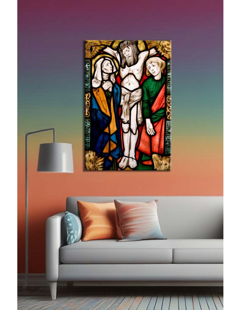 Reprodukcja obrazu Stanisław Wyspiański „Witraż: Ukrzyżowanie” drukowana na bawełnianym płótnie o dużej gramaturze. Obraz oprawiony w sosnowy blejtram 20 mm, zadrukowane boki – gotowy do zawieszenia.