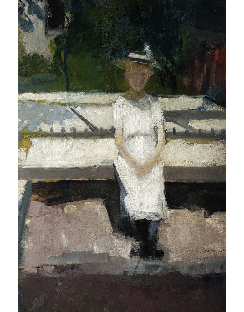 Reprodukcja obrazu Olga Boznańska „Dziewczynka w ogrodzie” drukowana na wysokiej jakości płótnie. Zadrukowane boki, sosnowy blejtram 20 mm – obraz gotowy do powieszenia na ścianę.