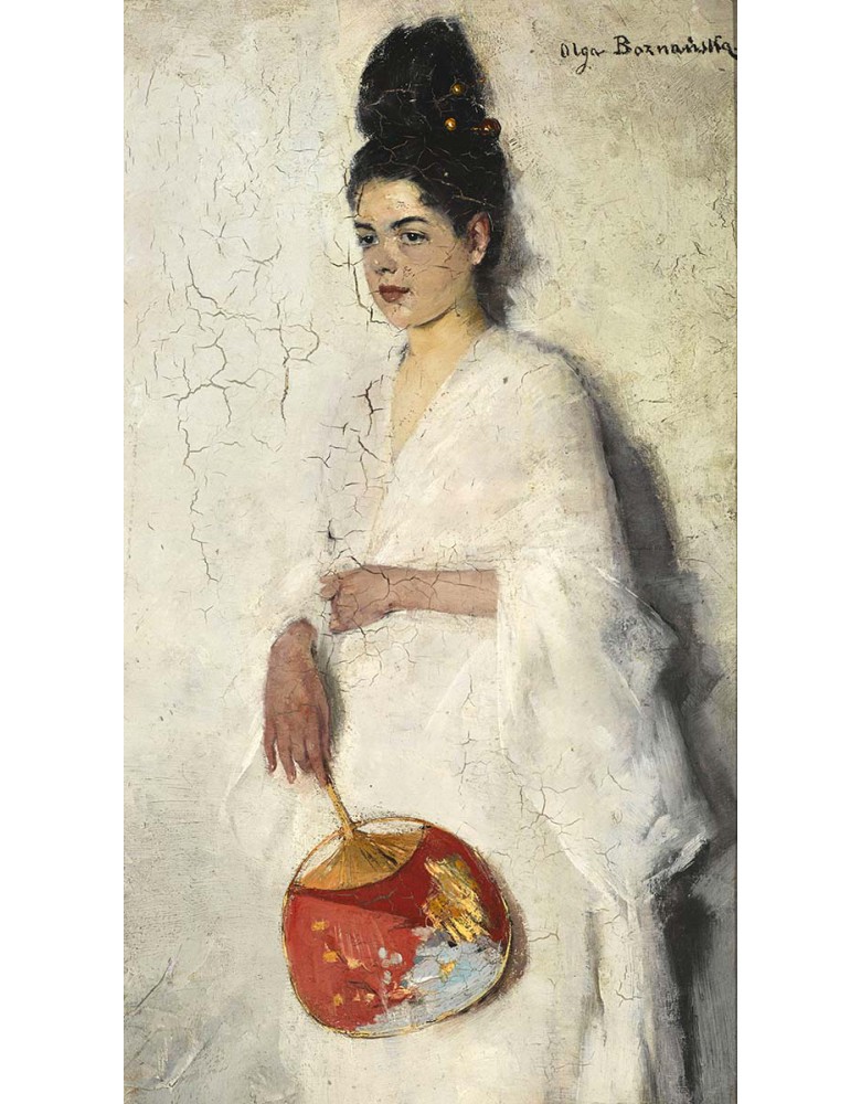 Reprodukcja obrazu Olga Boznańska „Japonka” drukowana na wysokiej jakości płótnie. Zadrukowane boki, sosnowy blejtram 20 mm – obraz gotowy do powieszenia na ścianę.