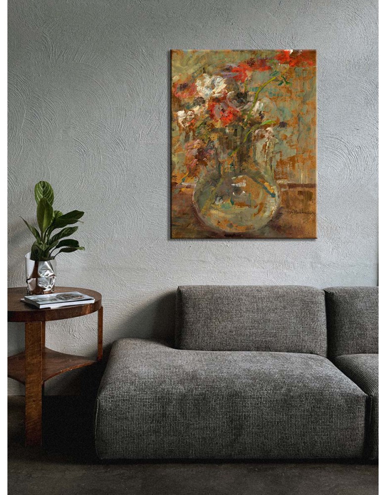 Reprodukcja obrazu Olga Boznańska „Maki” to subtelny, poetycki obraz, w którym artystka ukazuje bukiet intensywnie czerwonych maków zatopionych w miękkiej, impresyjnej atmosferze. Delikatne kwiaty kontrastują z rozmytym, stonowanym tłem, tworząc kompozycję pełną światła, harmonii i ulotności – tak charakterystycznych dla twórczości Boznańskiej.
