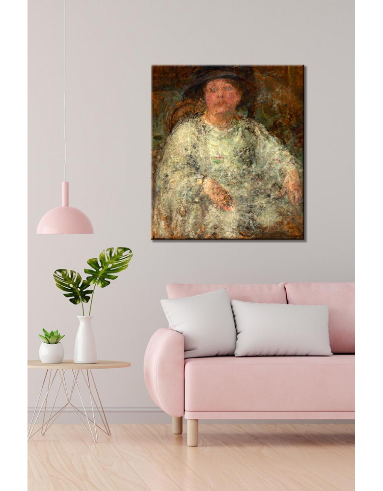 Reprodukcja obrazu Olga Boznańska „Portret damy w okularach” drukowana na wysokiej jakości płótnie. Zadrukowane boki, sosnowy blejtram 20 mm – obraz gotowy do powieszenia na ścianę.