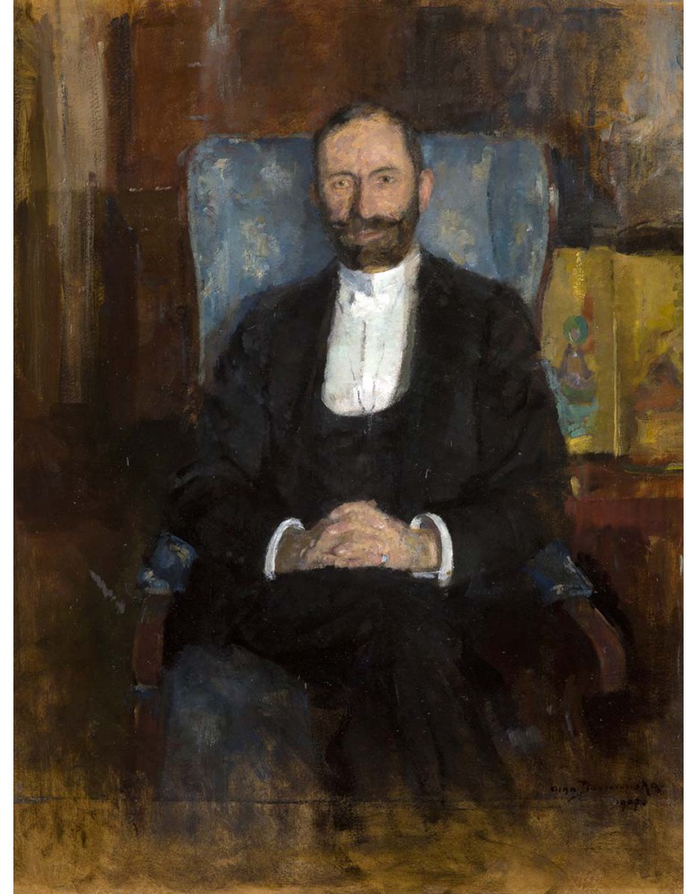 Reprodukcja obrazu Olga Boznańska „Portret Feliksa Jasieńskiego” drukowana na wysokiej jakości płótnie. Zadrukowane boki, sosnowy blejtram 20 mm – obraz gotowy do powieszenia na ścianę.