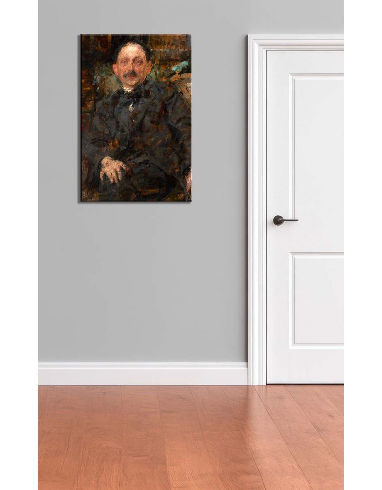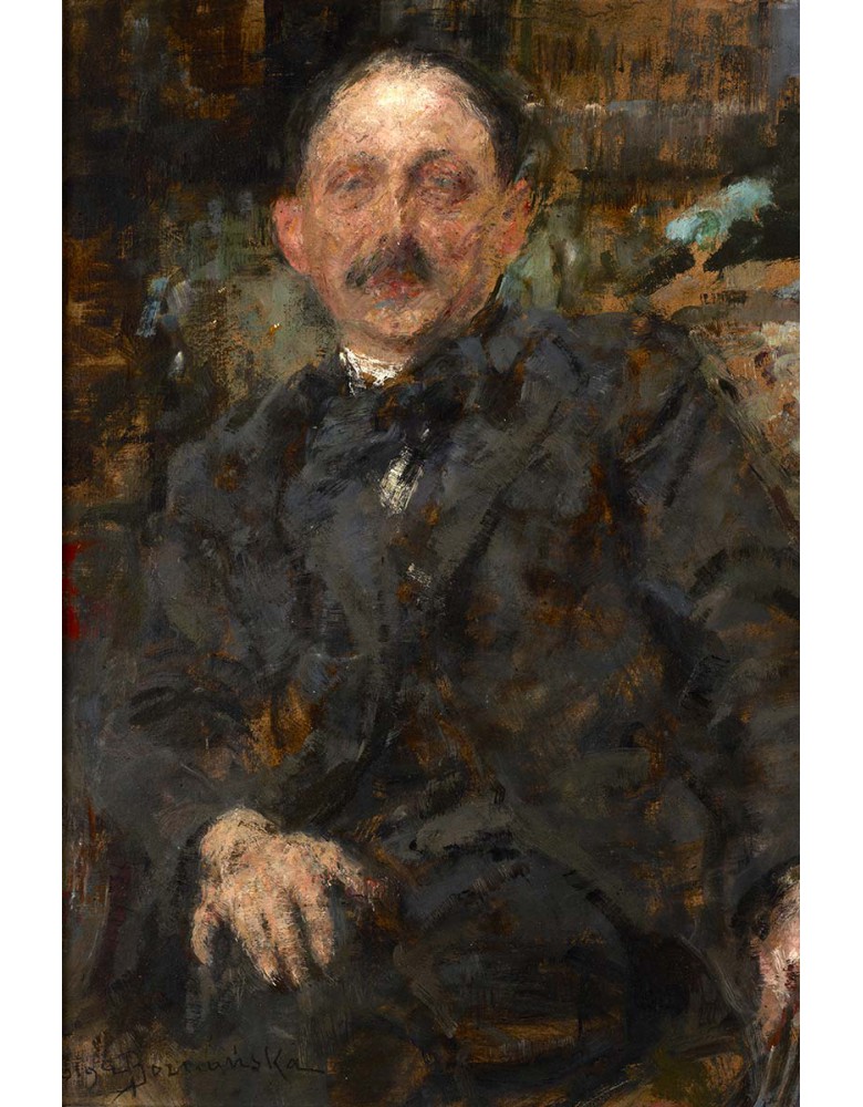 Reprodukcja obrazu Olga Boznańska „Portret malarza Marcina Samlickiego” drukowana na wysokiej jakości płótnie. Zadrukowane boki, sosnowy blejtram 20 mm – elegancki obraz gotowy do powieszenia na ścianę.