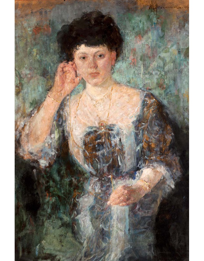 Reprodukcja obrazu Olga Boznańska „Portret pani Horainowej” drukowana na wysokiej jakości płótnie. Zadrukowane boki, sosnowy blejtram 20 mm – klasyczny obraz gotowy do powieszenia na ścianę.
