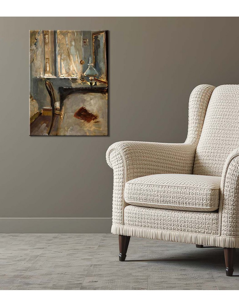 Reprodukcja obrazu Olga Boznańska „Studium wnętrza pracowni artystki w Krakowie” drukowana na wysokiej jakości płótnie. Zadrukowane boki, sosnowy blejtram 20 mm – klimatyczny obraz gotowy do powieszenia na ścianę.