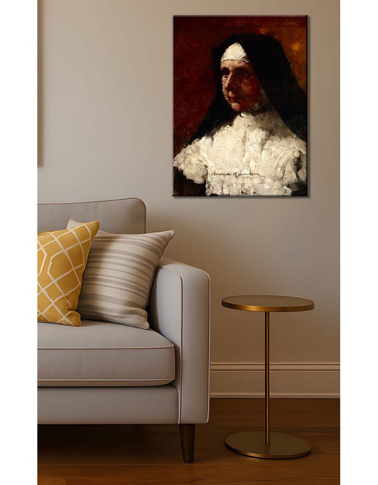 Reprodukcja obrazu Olga Boznańska „Studium zakonnicy” drukowana na wysokiej jakości płótnie. Zadrukowane boki, sosnowy blejtram 20 mm – elegancki obraz gotowy do powieszenia na ścianę.