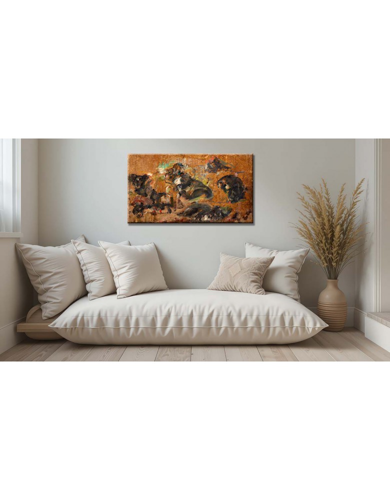 Reprodukcja obrazu Olga Boznańska „Szkice psów” drukowana na wysokiej jakości płótnie. Zadrukowane boki, sosnowy blejtram 20 mm – dynamiczny obraz gotowy do powieszenia na ścianę.