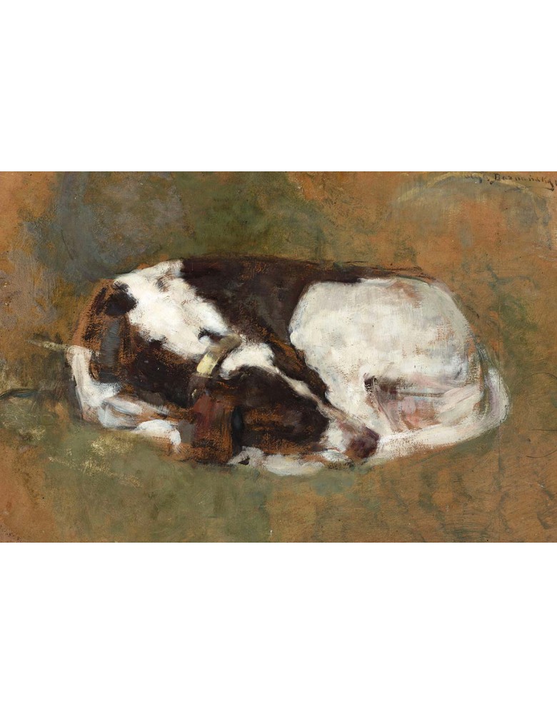 Reprodukcja obrazu Olga Boznańska „Śpiący pies” drukowana na wysokiej jakości płótnie. Zadrukowane boki, sosnowy blejtram 20 mm – kameralny obraz gotowy do powieszenia na ścianę.