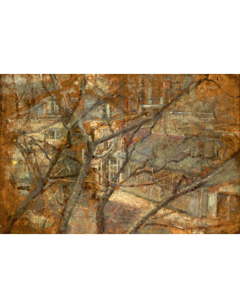 „Widok z okna pracowni” to kameralny i nastrojowy obraz autorstwa Olga Boznańska, przedstawiający fragment przestrzeni miejskiej widziany z okna pracowni artystki. W dziele tym Boznańska łączy subtelność obserwacji z wyciszonym, harmonijnym klimatem, typowym dla jej twórczości.