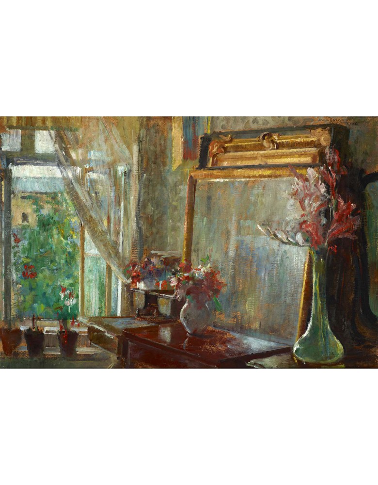 Reprodukcja obrazu Olga Boznańska „Wnętrze” drukowana na wysokiej jakości płótnie. Zadrukowane boki, sosnowy blejtram 20 mm – subtelny obraz gotowy do powieszenia na ścianę.