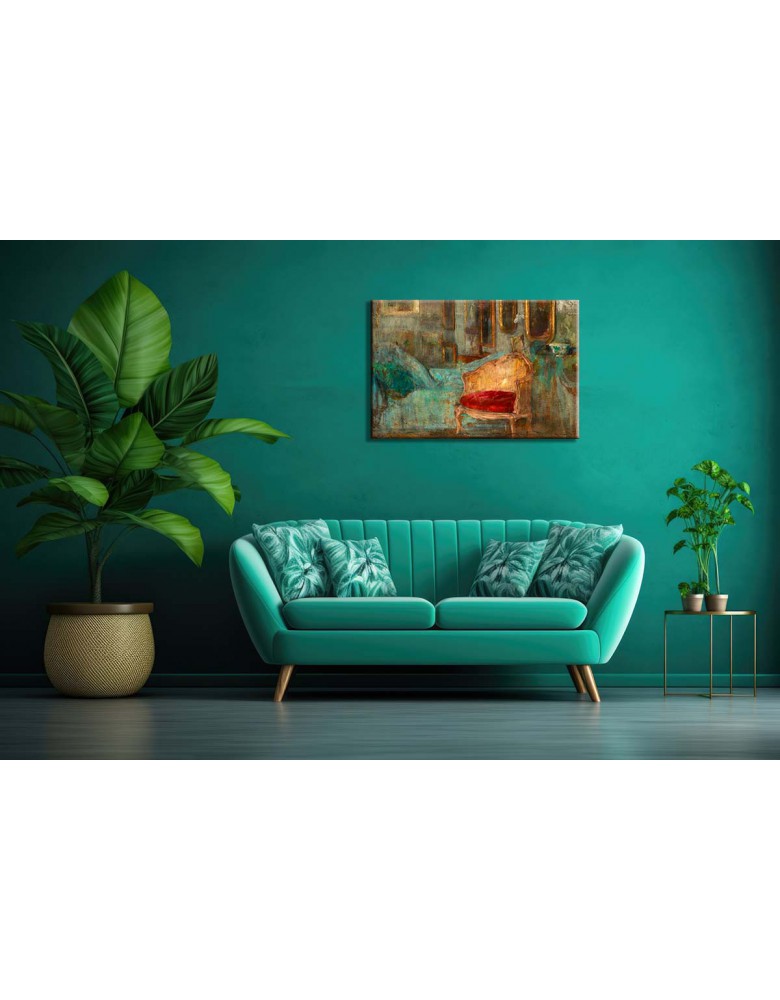 Kompozycja utrzymana jest w stonowanej palecie barw, z przewagą brązów, beży i szarości. Miękkie, impresyjne pociągnięcia pędzla oddają grę światła i cienia, fakturę przedmiotów oraz głębię przestrzeni. Obraz emanuje spokojem, kameralnością i subtelną elegancją, a każdy detal wnętrza pracowni wydaje się pełen życia i cichej poetyki.