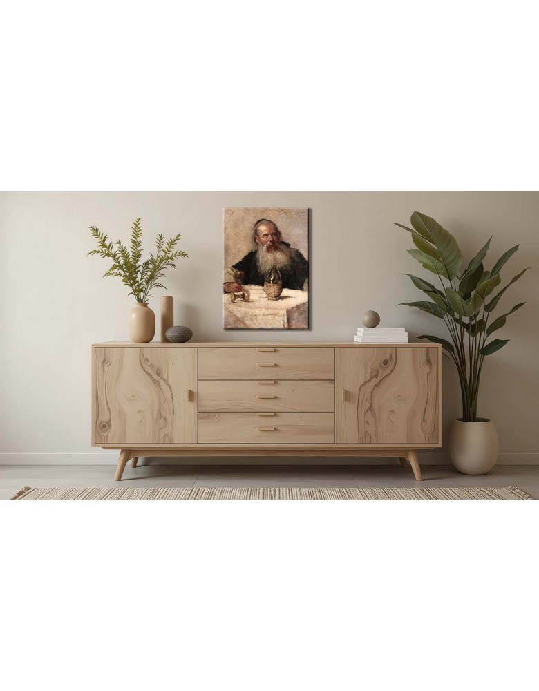 Reprodukcja obrazu Olga Boznańska „Żyd przy winie” drukowana na wysokiej jakości płótnie. Zadrukowane boki, sosnowy blejtram 20 mm – nastrojowy obraz gotowy do powieszenia na ścianę.