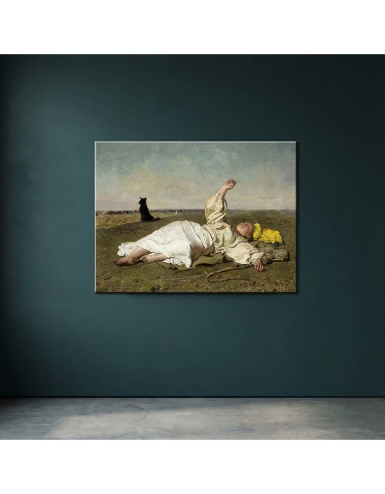 „Babie lato” to jedno z najbardziej rozpoznawalnych dzieł autorstwa Józef Chełmoński, ukazujące młodą pasterkę odpoczywającą na łące, zanurzoną w ciszy późnego lata. Ten ikoniczny obraz polskiego realizmu zachwyca prostotą motywu oraz niezwykłą wrażliwością w oddaniu nastroju natury i codziennego życia wsi.
