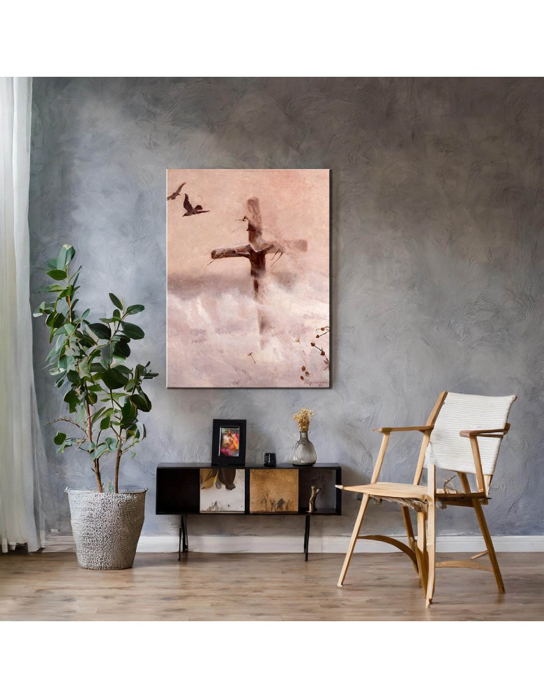 Reprodukcja obrazu Józef Chełmoński „Krzyż w zadymce” to ponadczasowy obraz, który wniesie do wnętrza atmosferę skupienia, refleksji i surowego piękna zimowego pejzażu.