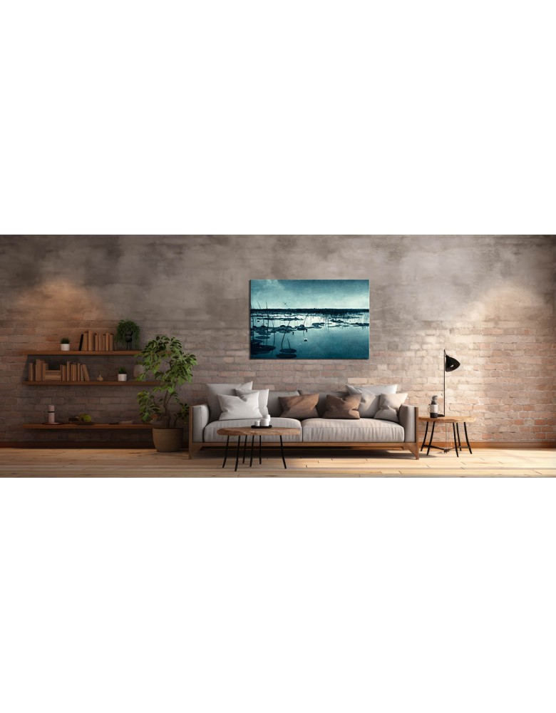 Wysokiej jakości wydruk na płótnie o dużej gramaturze, wiernie oddający detale roślinności oraz subtelne refleksy światła na powierzchni wody w obrazie.
