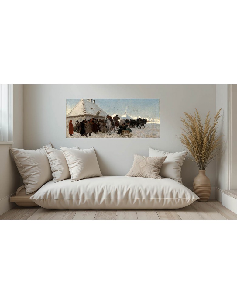 Reprodukcja obrazu Józef Chełmoński „Sprawa u wójta” to realistyczny i narracyjny obraz, który doskonale sprawdzi się w salonie, gabinecie lub wnętrzu urządzonym w klasycznym stylu.